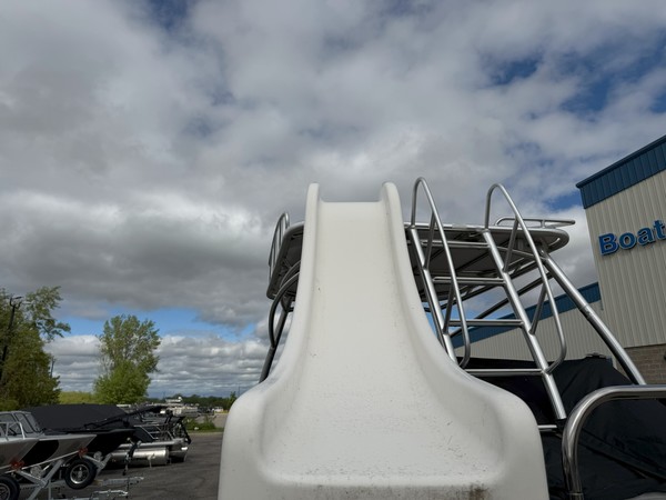 Features include slide, entertainment bar, bow loungers, stereo system, and changing room.